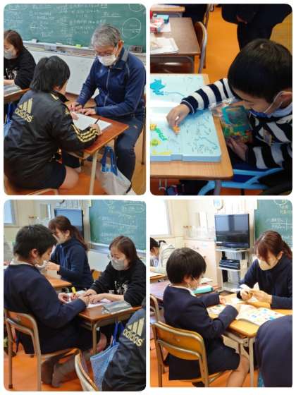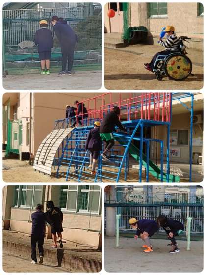 今日は、なかよし学級の公開授業がありました。最初に運動場に出て運動あそびをしました。コンビネーション遊具や鉄棒などを使って体をたくさん動かしました。運動あそびの次は、なかよしの教室で個別の課題に取り組みました。先生達が子どもに応じて様々な工夫をしているので、どの子もしっかり学習に取り組んでいました。先生達からたくさんほめてもらい、最後まで笑顔でがんばっていました。