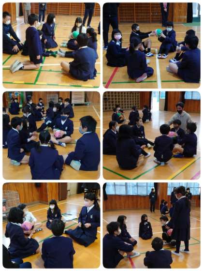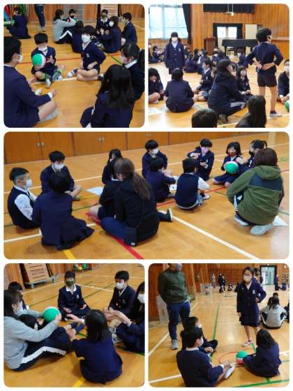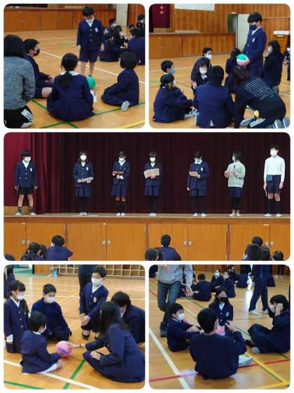 3学期、1回目の児童集会は、「ばくだんゲーム」でした。たてわり班で円になり、集会委員の子ども達の合図でボールを右に回したり左に回したり・・・。シンバルが鳴った時にボールを持っていた子が、名前と好きな運動や食べ物などの自己紹介をしました。いつシンバルが鳴るのかとハラハラしながらスリルを楽しんでいました。自己紹介が終わったらそれぞれの班から自然と拍手が起こっていました。いつもながらゲームの約束をしっかり守り、和やかな集会活動となりました。