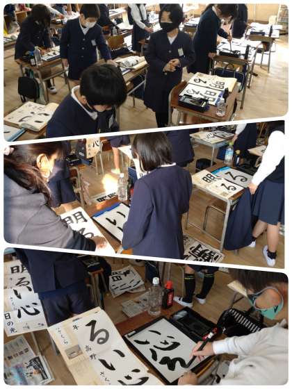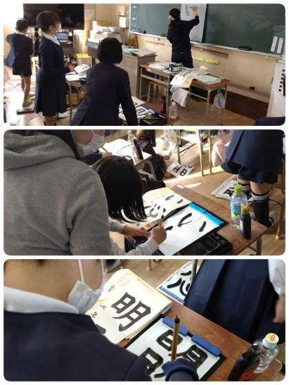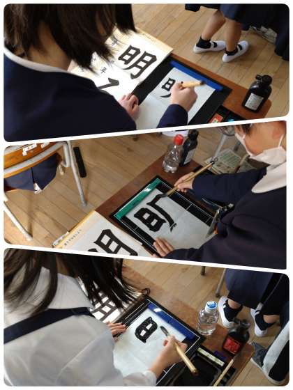 今日の2時間目、3年生が書初めに取り組んでいました。