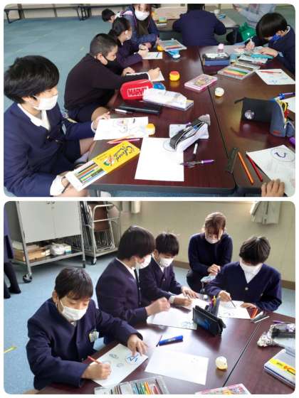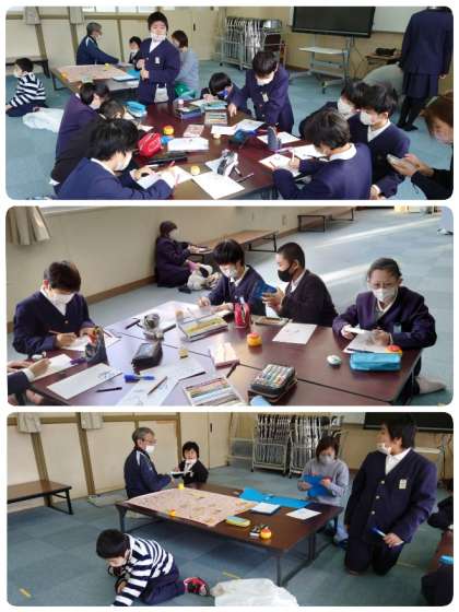 今日のなかよしタイムは、かるたづくりをしました。読み札に合わせて絵を上手に描いていました。
