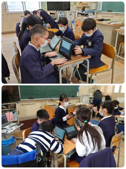 4年生が学習園で育てた枝豆を乾燥させて保管しています。これからその大豆を使ってみそづくりを計画しています。今日は、みそづくりの手順について調べ学習をして、パソコンの発表ノートにまとめていました。何だかみんなウキウキした様子でした。自分達で作ったみそは、5年の調理実習「みそ汁」で活用します。