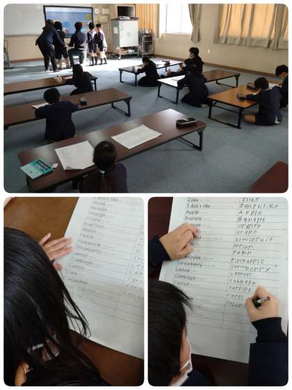 今日の5時間目、1・2年生が多目的室でC−NETの先生と一緒に英語活動に取り組みました。