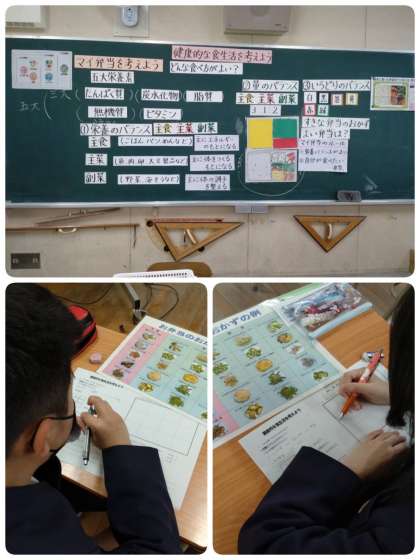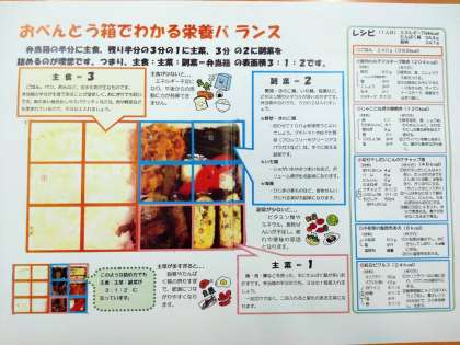 そして栄養のバランスとして、主食・主菜・副菜のバランスを考えたあと、“マイ弁当を考えよう”ということで、バランスの良い弁当の中身を考えました。