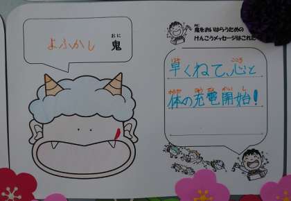 けんこう委員会からのメッセージは、「○○鬼を追いはらおう!!」。