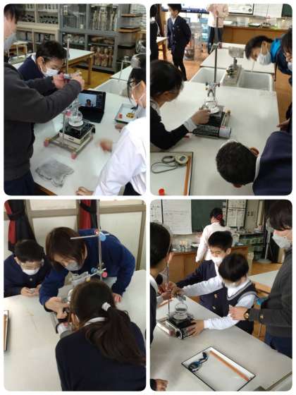 今日の6時間目、4年生が理科室で理科の学習に取り組んでいました。