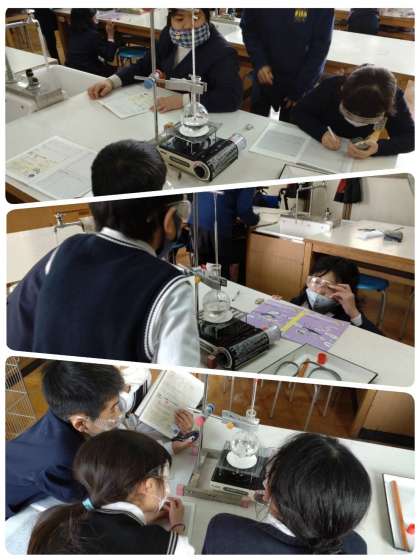 今学習しているのは「水のすがた」という単元で、今日は水を熱したらどうなるかの実験でした。フラスコに入った水をコンロで熱し、2分毎の水温と水の様子を観察するのですが、グループで役割を決め、手際よく実験を進めていました。