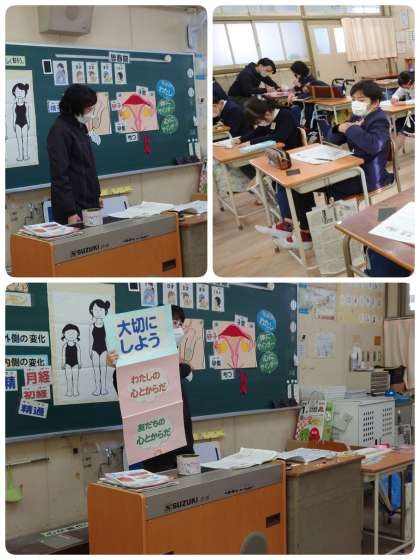 5時間目に、これから成長していく自分達の体や心についての学習をしました。子ども達は体の学習にとても興味を持っています。4年生の子ども達も真剣なまなざしで学習に取り組んでいました。思春期におこる体の外側の変化や体の内側の変化について学習しました。成長の仕方には個人差があることも知りました。初めて知ることばもたくさんでてきました。今後も発達段階に応じて学習を積み重ねていきます。お家でも今日学習したことについてぜひ聞いてみてください。