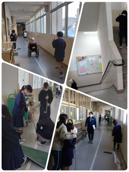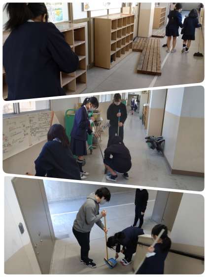 今日の昼休み、月に1回の校内クリーンアップ作戦(異学年清掃活動)を行いました。
