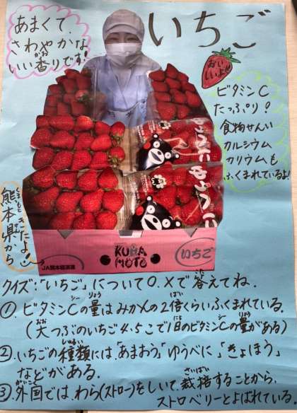 *今日の給食クイズの答えは、(1)○、(2)×、(3)○でした。