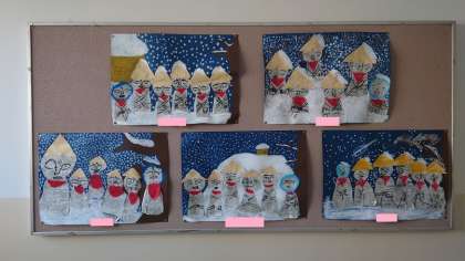 2年生が、国語の学習で取り組んだ「かさこじぞう」の絵を描きました。