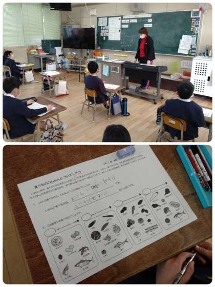2年生についても今回が3回目の栄養学習でしたが、今まで習ったことをよく覚えていて、先生の質問に元気よく答える児童がたくさんいました。