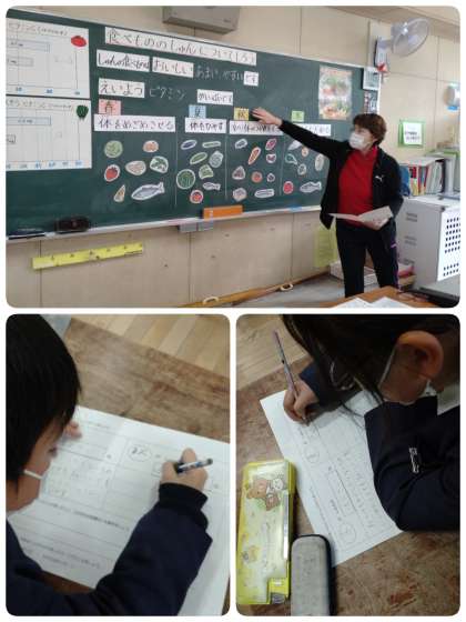 今日の3時間目、2年生が教室で本校栄養教員による栄養学習に取り組みました。
