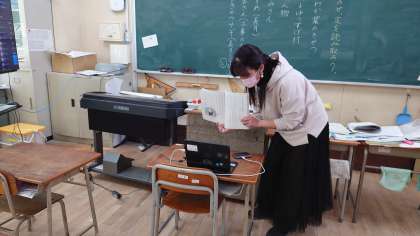 学級休業中の3年生は、オンライン授業で学習しました。大型テレビには、真面目に学習している子ども達が映っています。4時間目は、国語の「ゆうすげ村の小さな旅館」の学習をしました。担任の先生のお話をしっかり聞きながら取り組んでいました。午前中、オンラインを使いましたが、ずっと画面を見るのはよくないので午後からはプリント学習に取り組みます。