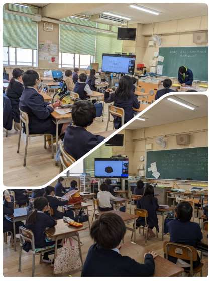 今回が本年度最後ということで、多目的室から各教室にオンライン配信で、シルエットクイズをしました。