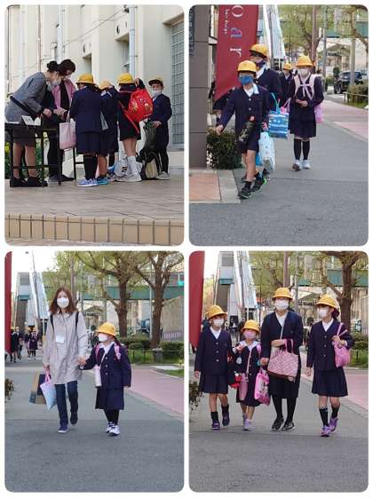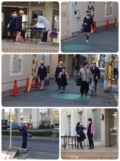 子ども達が、元気に登校してきました。新しい担任の先生達の発表があるので、わくわくした様子の子どもがたくさんいました。今日は、西警察の方も見守りに来てくださっていました。ありがとうございます。