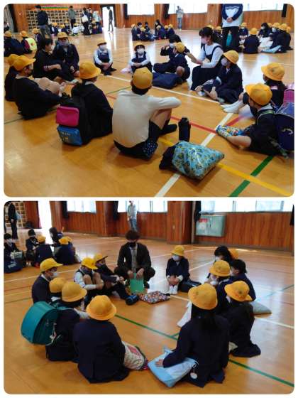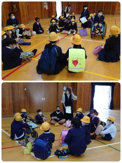 講堂に全員集まり、地域に分かれて、地域子ども会のメンバーと新1年生の確認や安全な登下校について話し合いをしました。その後、地域ごとに一斉下校をしました。担当の先生達も子ども達に付き添い、通学路の確認をしました。これから、お互いに声をかけ合って、誘い合って、安全に登下校できるように「さそいあい登校」の輪を広げていきたいと思います。