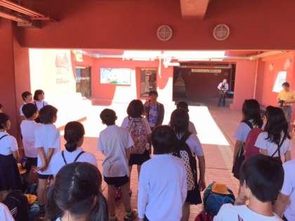 午後1時30分より退所式を海洋センター玄関で行いました。予定通り、淡輪駅午後2時8分の発の電車に乗りました。帰校は午後3時30分頃の予定です。