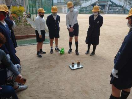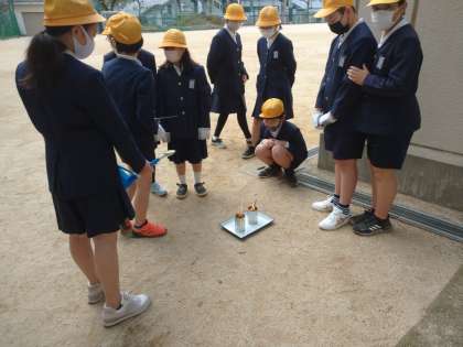 理科の燃焼実験を行いました。みんな熱心に観察しています。