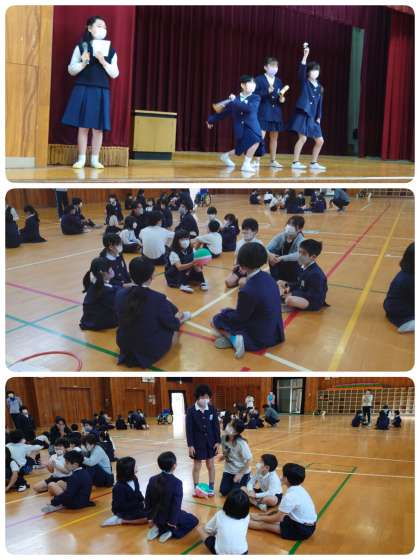 木曜日は「たてわりディ」です。朝の児童集会・お昼休みはたてわり班でのみんな遊び・清掃活動と、学校中のみんなが仲良く協力して活動できるようしていきます。