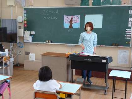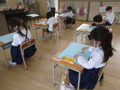 今日は桜の絵を描くことに挑戦しました。先生の話をよく聞いて描いています。