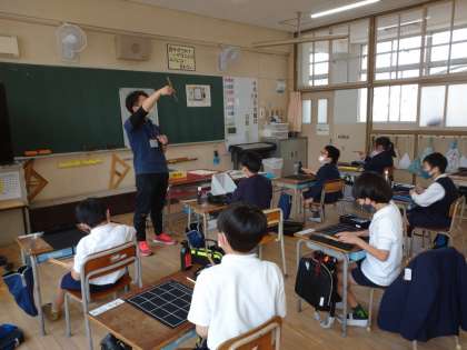 習字に挑戦です。先生が筆の持ち方から丁寧に説明し、みんなも一緒に筆を持って習字を学びました。