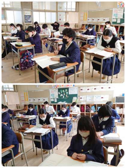 午前中、最後まで集中して取り組んだ6年生。とってもがんばったので終わったときに「疲れたぁ!!」の声が出ました。「だいたいできたよ!」と少し自信のある子も・・・。結果が楽しみですね。