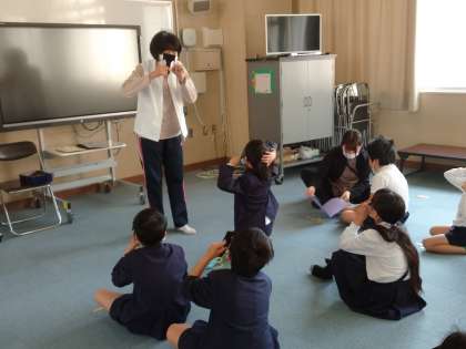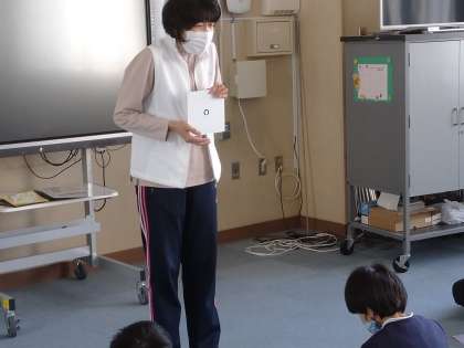多目的室で視力検査をしました。Cの開いてる方をうまく指差して検査していました。