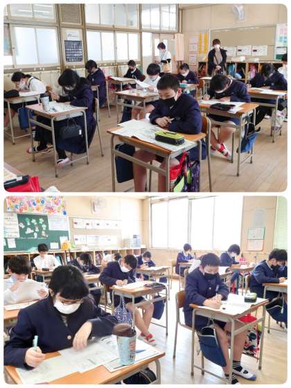 5・6年生の教室は、し〜んと静まりかえっていて、子ども達は集中して問題に向かっていました。6年生は2日連続のテストになりますが、今日もすごくがんばっていましたよ。