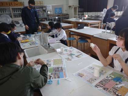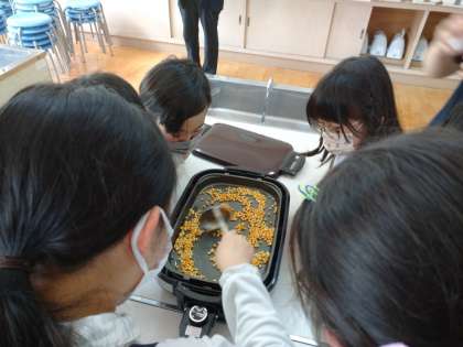 料理 さいほうクラブは、ポップコーンを作りました。デジタル科学クラブは、紙コップでコマを作っていました。