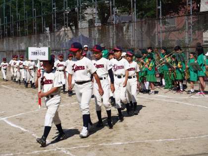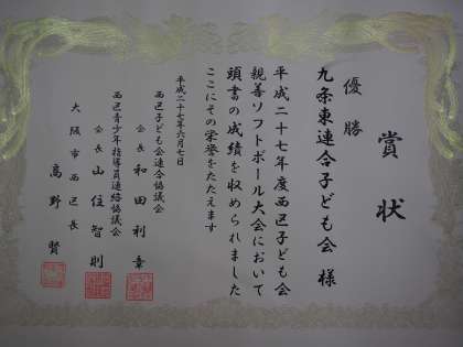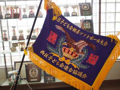 6月7日に松島広場で西区子ども会ソフトボール大会が行われました。本校運動場でいつも練習している少年野球チーム「ライナーズ」のメンバーを中心とする九条東子ども会チームが、抜群のチームワークで見事に優勝しました。