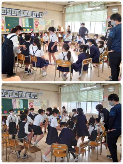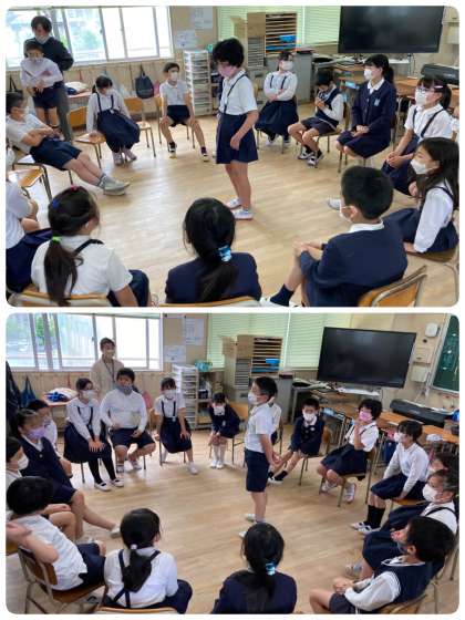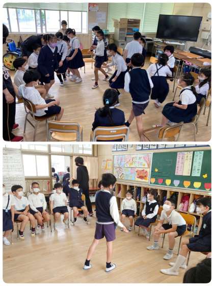 15分休みの時間、5年生の教室で、2・5年生が「フルーツバスケット」を楽しんでいました。みんなでわいわい!!