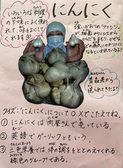 今日の給食クイズの答えは、1番×、2番〇、3番〇です。
