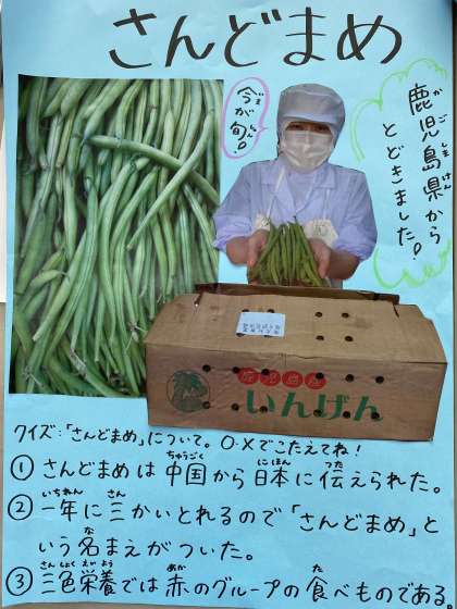クイズの答えは、1番〇、2番〇、3番×です。さんどまめは体の調子を整える緑色のグループの食べものです。