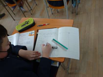 Xを使って問題作りをしています。みんな真剣に取り組んでいます。