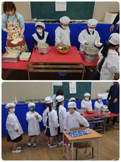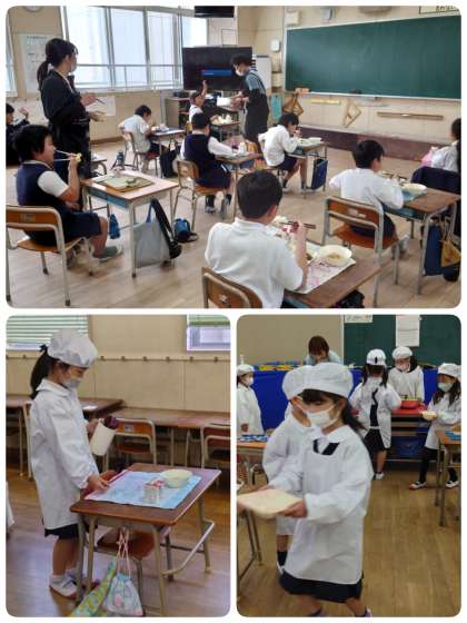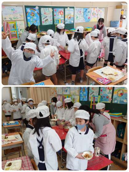 東っこたちは、給食をモリモリ食べます。もちろん食の細い子ども達もいますが、お代わりをする子もたくさんいて、給食が残ることはほとんどありません。今日の献立では「ちくわのいそべあげ」が大人気でした。給食室前で、「一人○個ずつです。」と伝えると、大喜びして飛び跳ねていました。