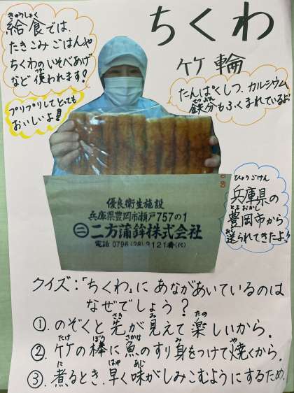 ちくわを、小麦粉、青のりの衣で揚げた「ちくわのいそべあげ」は、子どもたちに人気の献立の一つです。