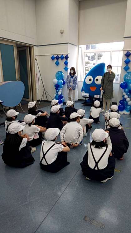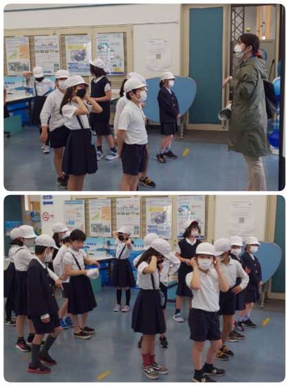 浄水場の方の説明を聞き、施設の見学に出発します。