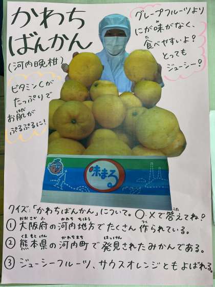 かわちばんかんは、熊本市の河内町で発見されたみかんの仲間で、あたたかいところで育ちます。