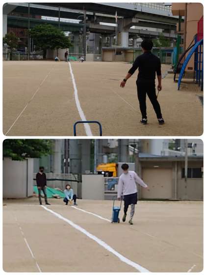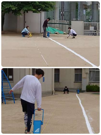 今週は「体力テスト週間」です。朝早くから、先生達が手際よく50m走のラインを引いてくれました。