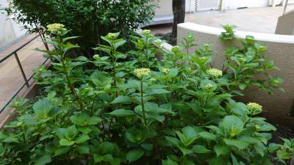 アジサイの小さな小さなつぼみがつき始めました。まだ緑色です。もう少ししたら、毎年のように色鮮やかなアジサイを楽しむことができます。