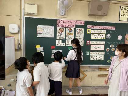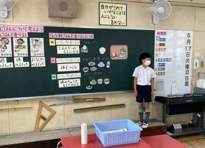 その後、自分の考えた朝ごはんを発表しました。いきいきと楽しく、活発にアイデアを出しながら朝ごはんを考えていました。