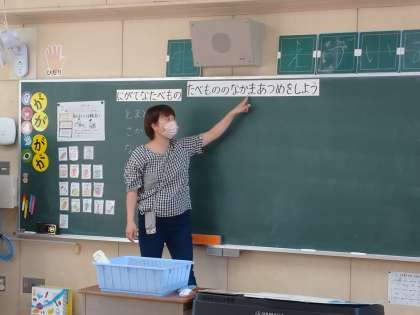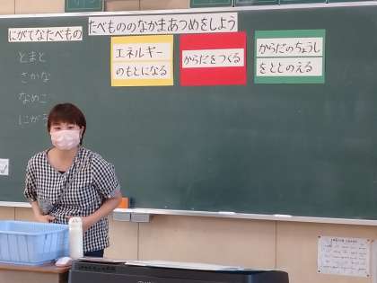 紙芝居を見て栄養学習をしたり、食べ物の仲間集めをしたりしました。みんな積極的に取り組んでいました。