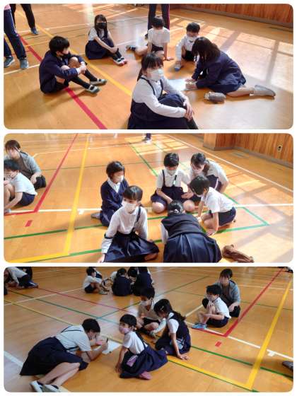 今日の児童集会は、「ものあてゲーム」でした。舞台のカーテンの隙間をいろんなものが一瞬通り過ぎます。子ども達は、みんな目を凝らして見ていました。