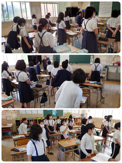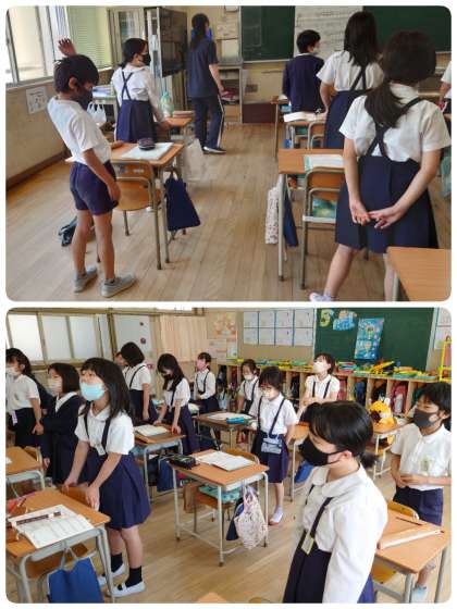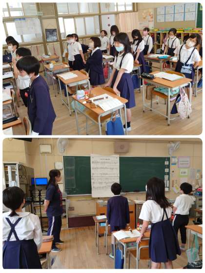 廊下を歩いていると、4年生の教室からステキな歌声が聴こえてきました。教室に入ると、リズムに合わせて体を動かしながら、とても気持ちよさそうに歌っていました。音程もバッチリ合っています。きっと子ども達のお気に入りの曲だと思います。