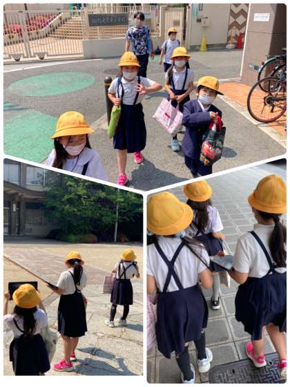 5時限目に2年生が町たんけんをしました。ナインモールや茨住吉神社などを回りました。商店街にはいろいろなお店があり、「行ったことある!」と教えてくれました。また、神社にある大きな建物は何だろう?と疑問が出てきました。気になるところはタブレットで写真を撮り、学校でまとめていきたいと思います。
