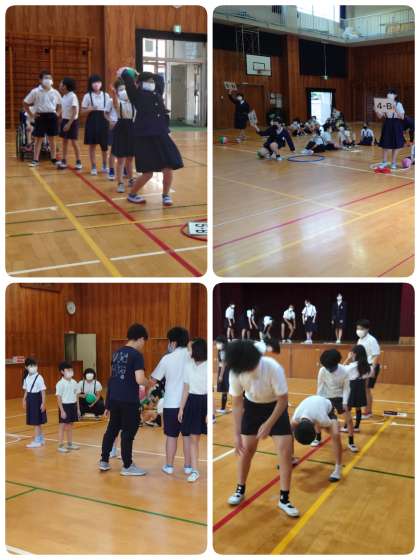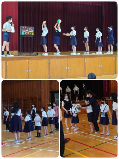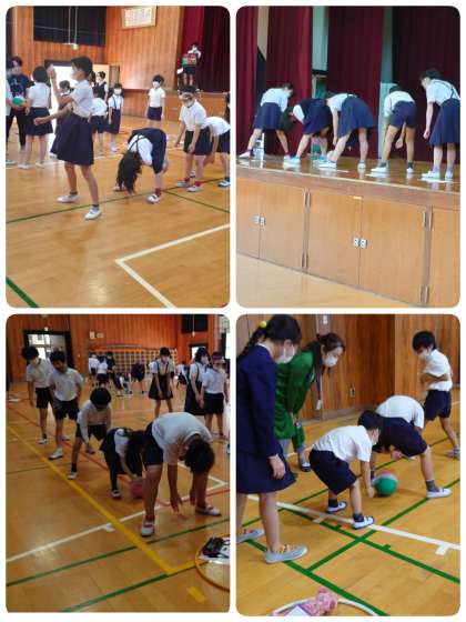 今日の児童集会は「ボールまわし」でした。たてわり班ごとに1列になり、順にボールを回していきます。制限時間は15秒で、スタートの班長さんにボールが戻ってきたらゴールです。上から、横から、下から、転がして・・・。回し方はどんどん変わっていきますが、集会委員の説明がとても上手なので分かりやすかったです。班のみんなで協力して楽しみました。