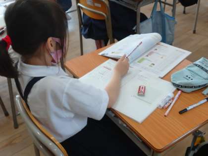 折れ線グラフの学習をしました。目盛の読み方、書き方を勉強しました。