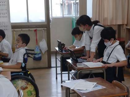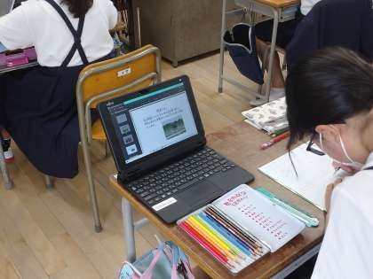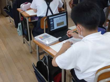 米作りについて、パソコンを使って田おこしや種もみなどを調べて自主学習しています。