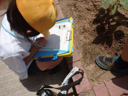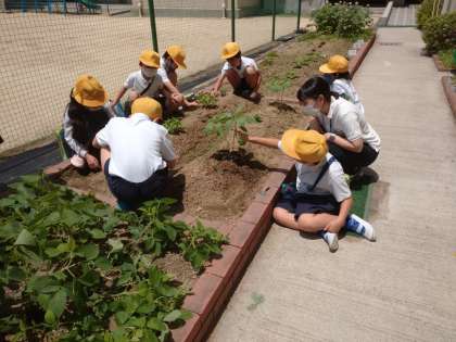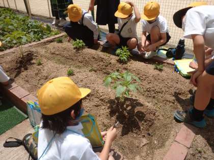 今日は、ひまわりやマリーゴールドの観察をしました。順調に育っています。