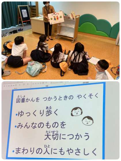 さっそく図書館の方のお話を聞いています。
